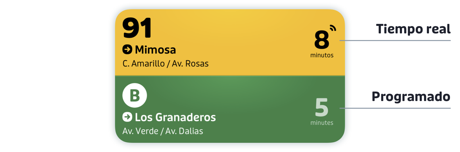 Las salidas en tiempo real están marcadas con el icono de las ondas de radio, así podrás saber cuándo va a llegar realmente el vehículo.