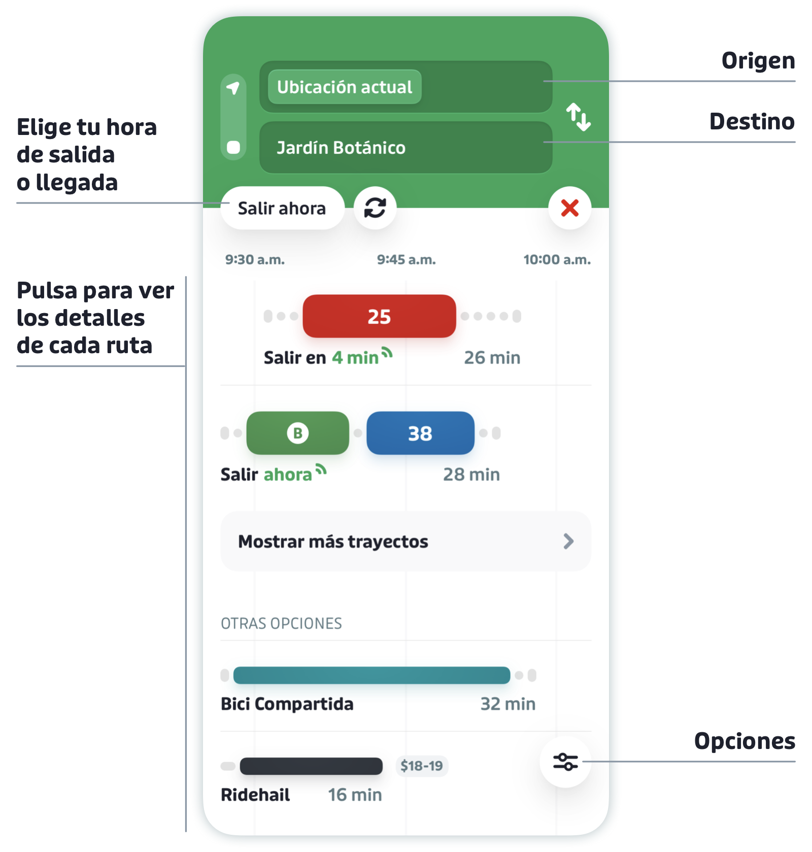 Transit puede ayudarte a llegar a cualquier punto de tu ciudad, solo tienes que decirnos a dónde quieres ir: