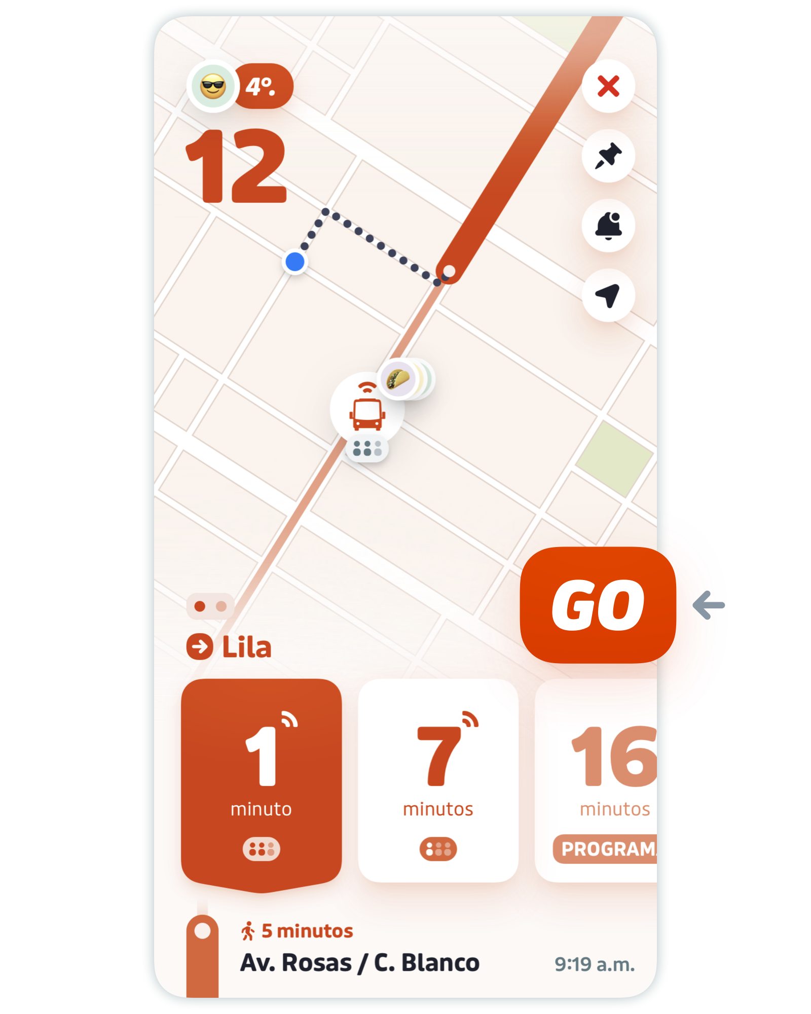 El uso anónimo de GO permite compartir la ubicación de tu autobús, colectivo o tren con otros usuarios para mejorar la precisión de la ubicación en tiempo real en tu ciudad.