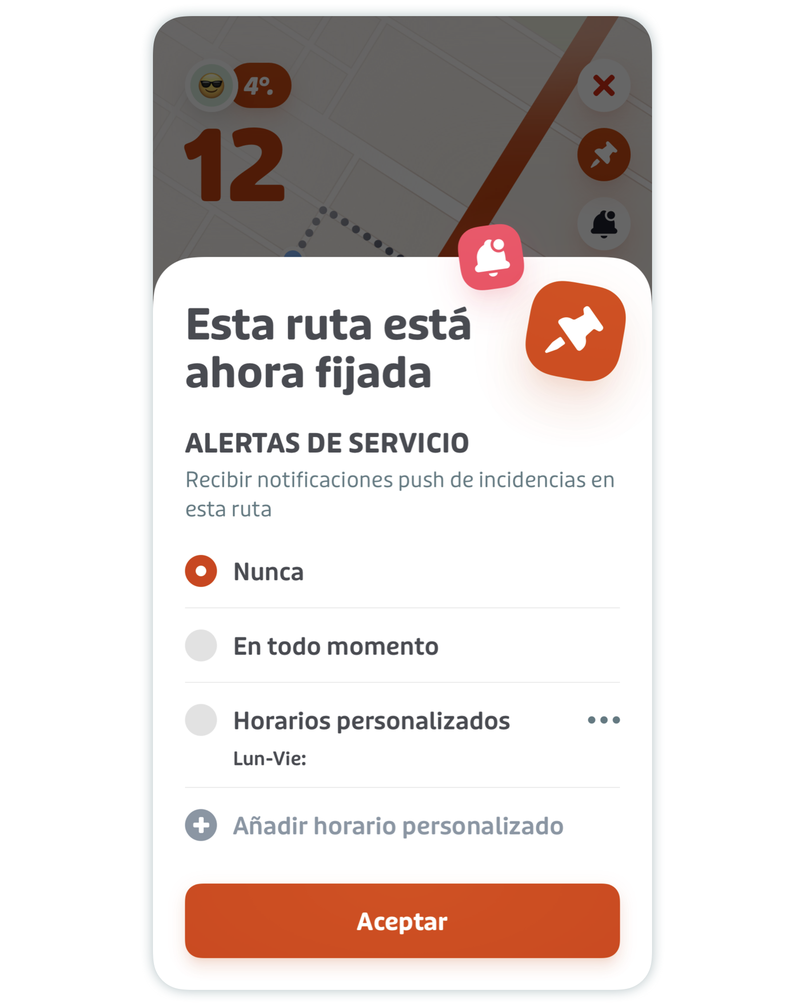 Fijar rutas para tener un acceso más rápido y notificaciones de cambios en el servicio