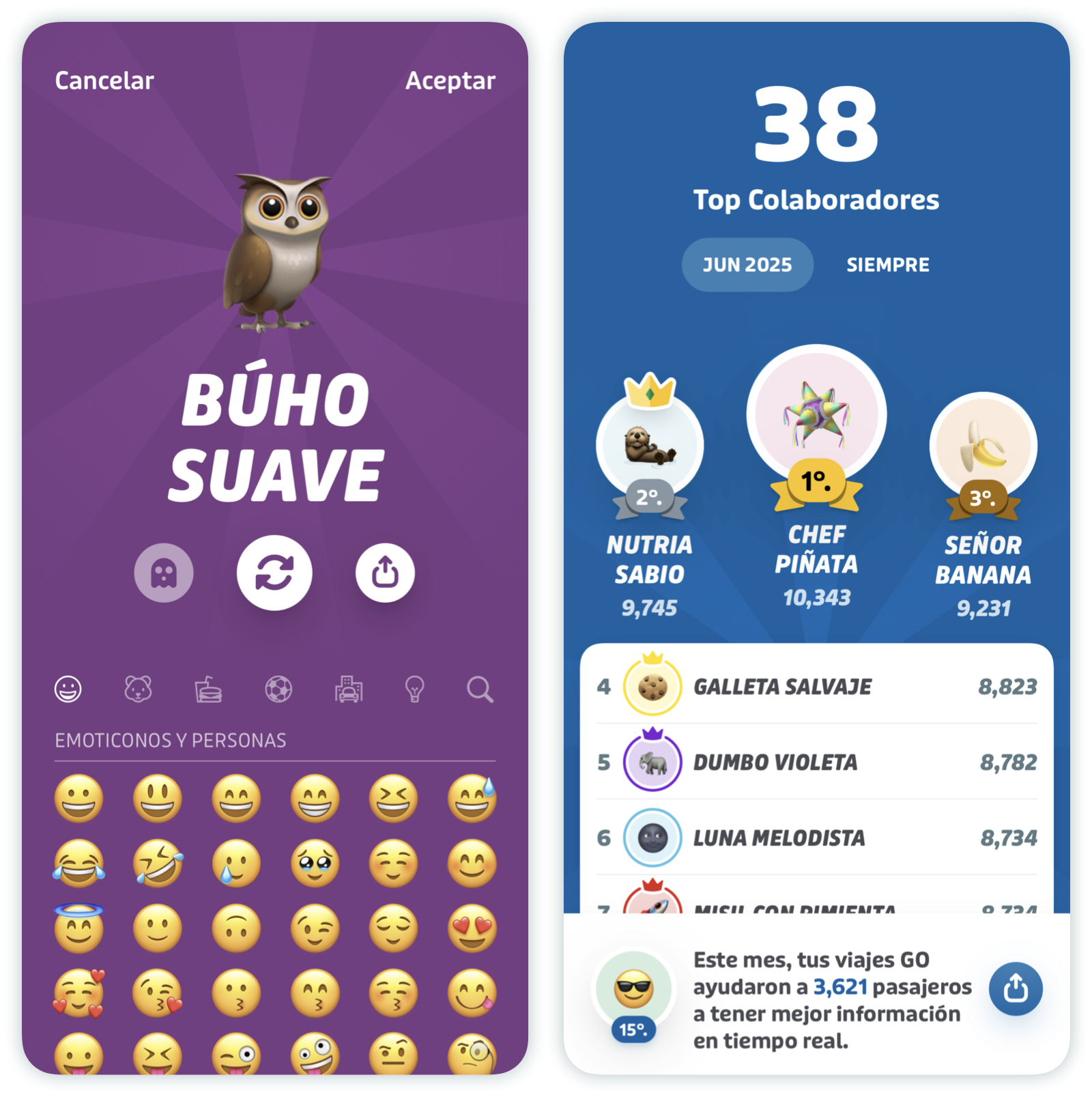 - Sé una celebridad con GO: Crea el alter ego de tus sueños para tus viajes. Elige tu propio emoji y apodo para las clasificaciones de GO.