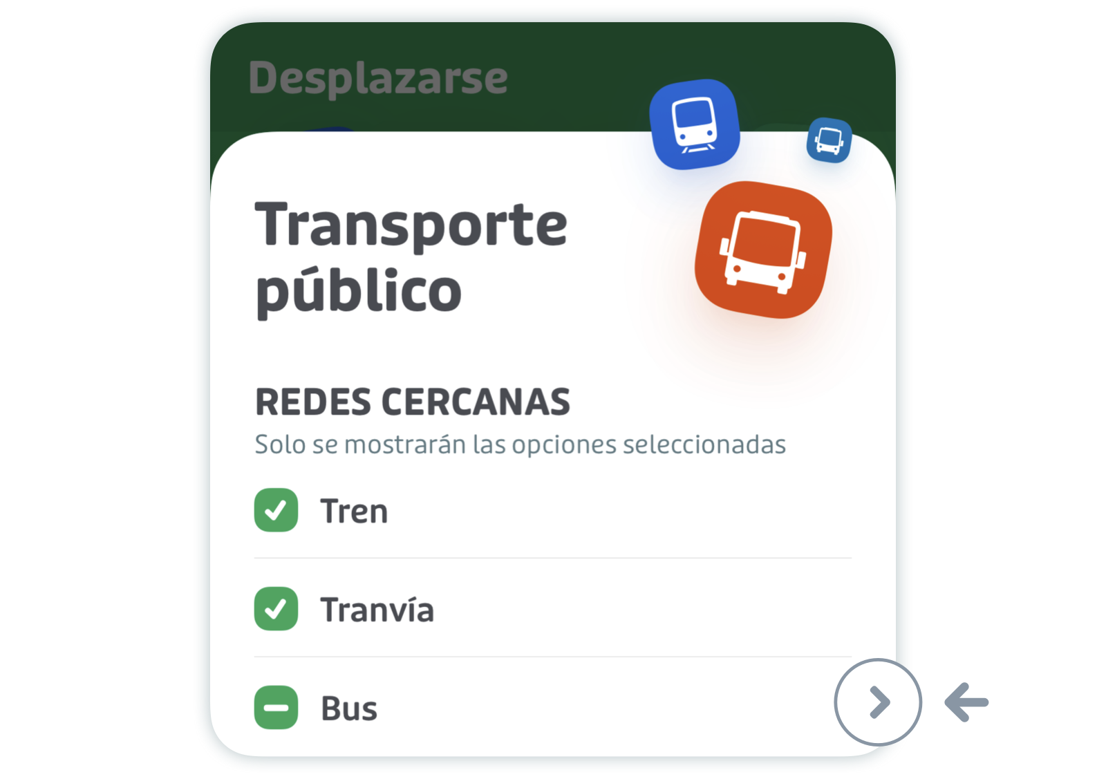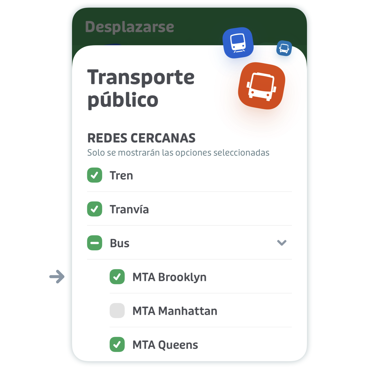 Desplázate hacia abajo hasta "Desplazarse" y pulsa "Transporte público".