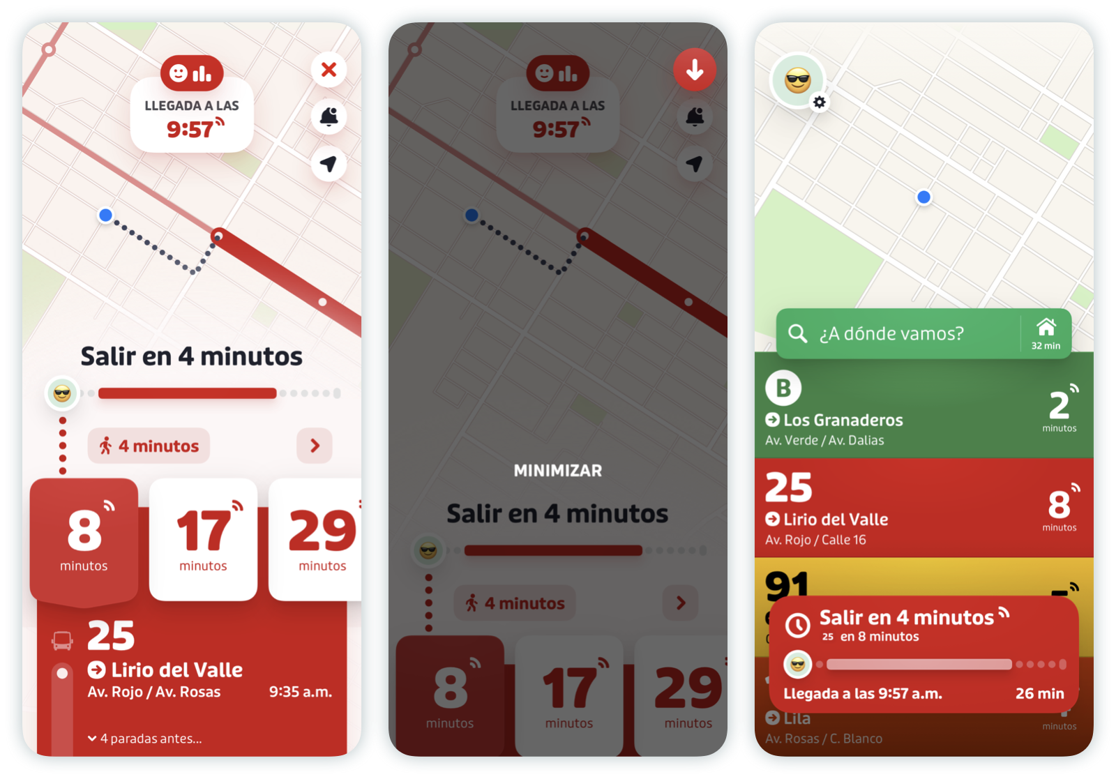 - Sal en … minutos, así sabrás cuándo dirigirte a tu parada.