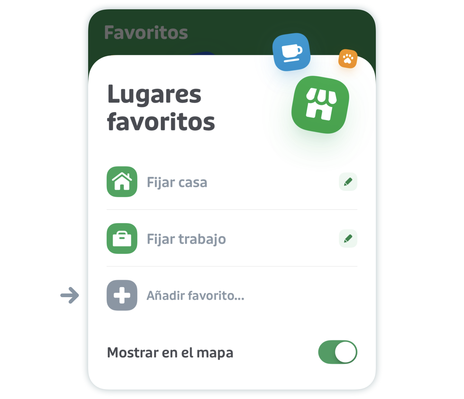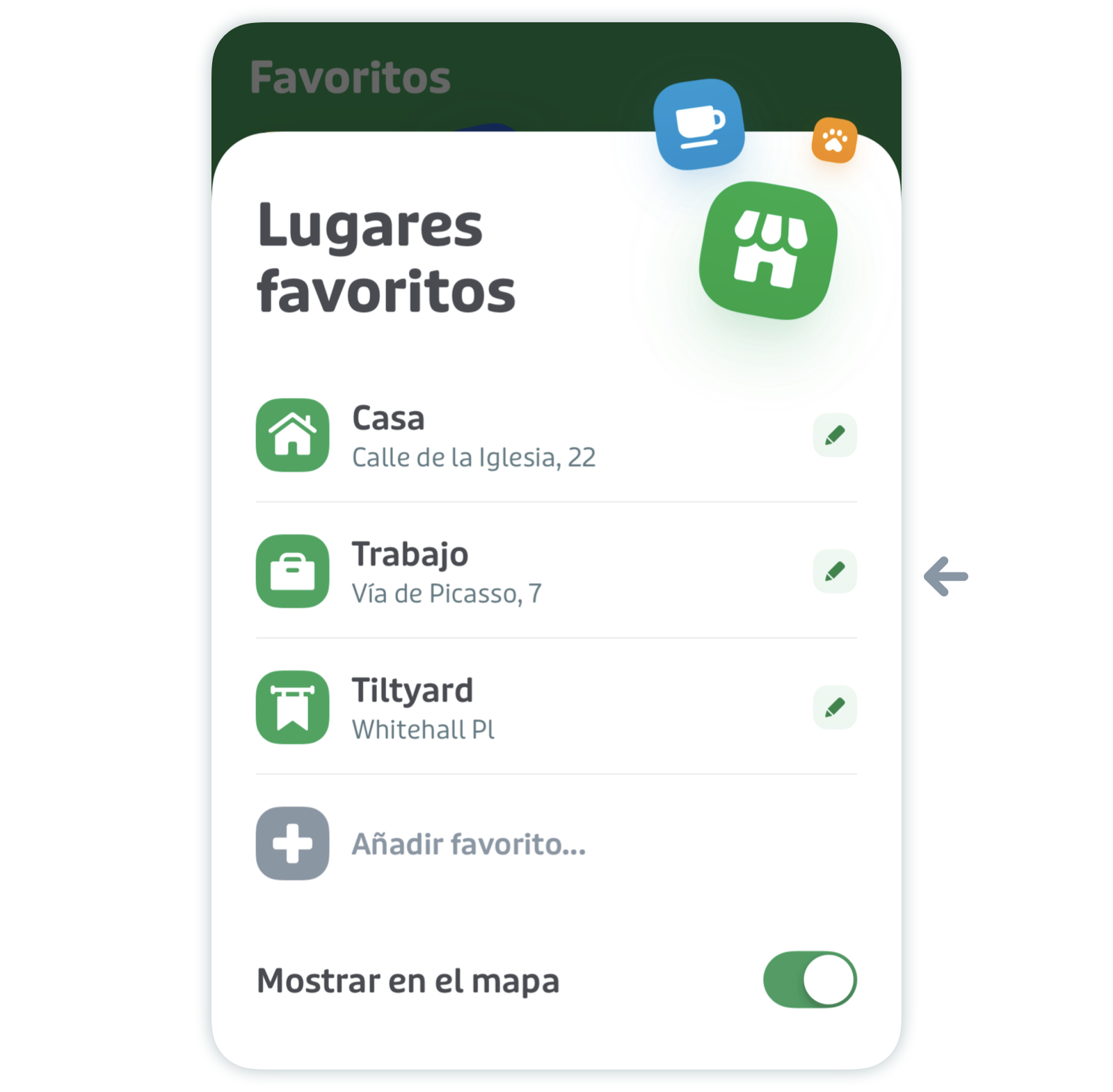 Puedes ver y editar tus lugares favoritos desde los ajustes.